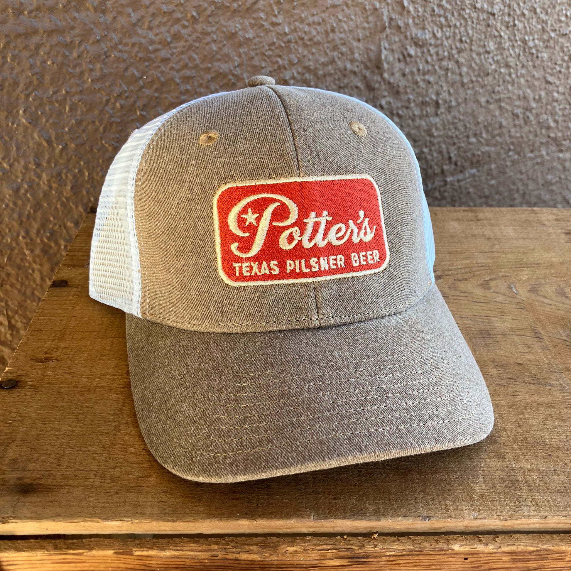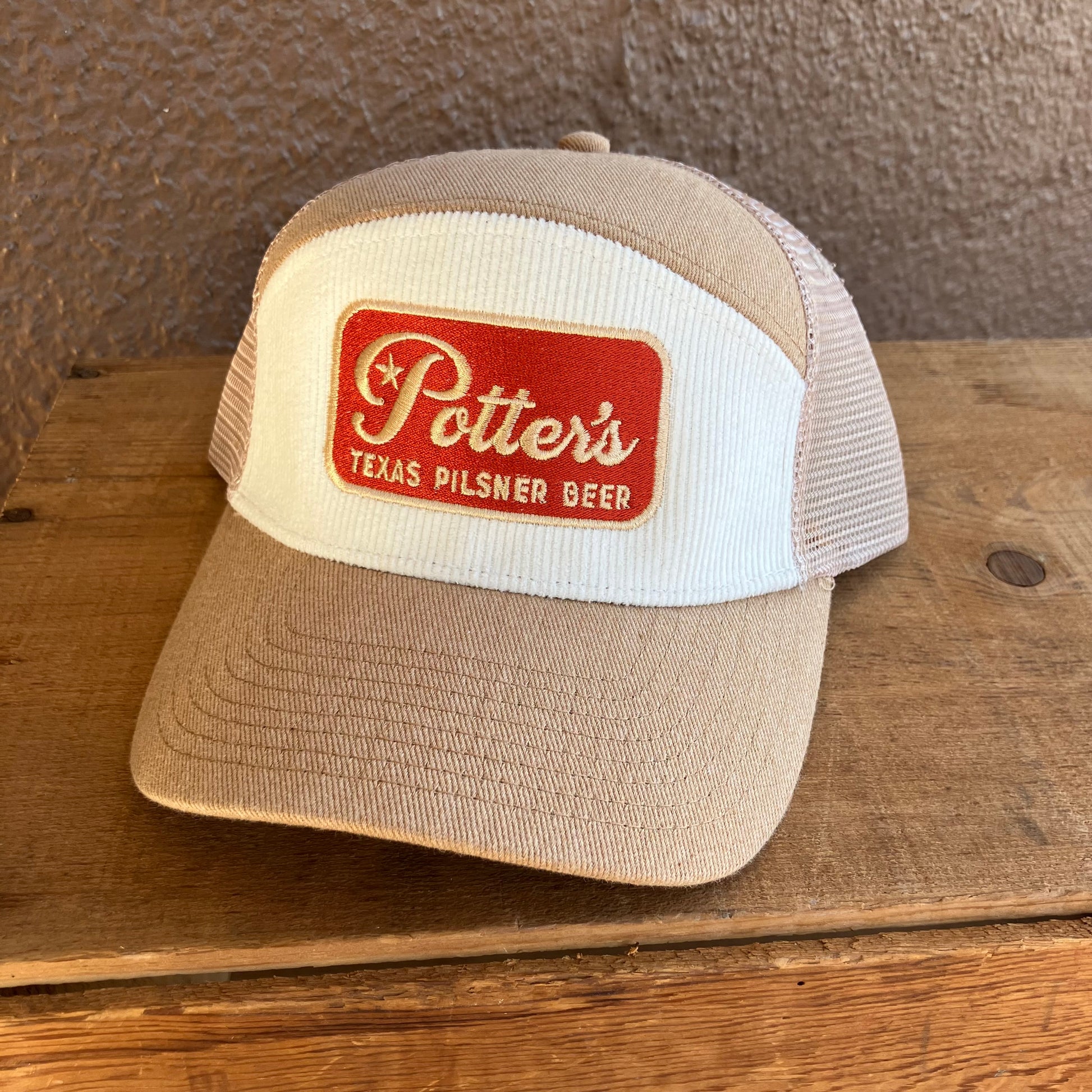 Unique caps designed to celebrate the release of Potter's Pilsner. Featuring the Potter's Pilsner logo embroidered on the front. Limited edition. Potter's Pilsner was brewed by Hound Song Brewing Co. in Columbus, Texas to celebrate our 60th Anniversary in 2025!